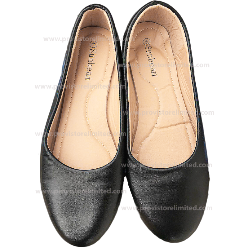Shoe (Flat) - Ladies Black Leather Plain quantity